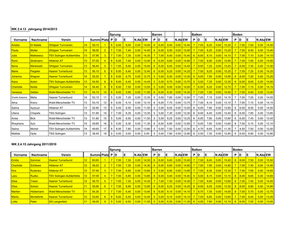 In der AK 13/14 gingen der Titel und Vizetitel an den Ohligser Turnverein an Amelia Di Natale und Paula Molter. Der Bronzepokal wurde Julia Malkiewicz vom TSV überreicht.
